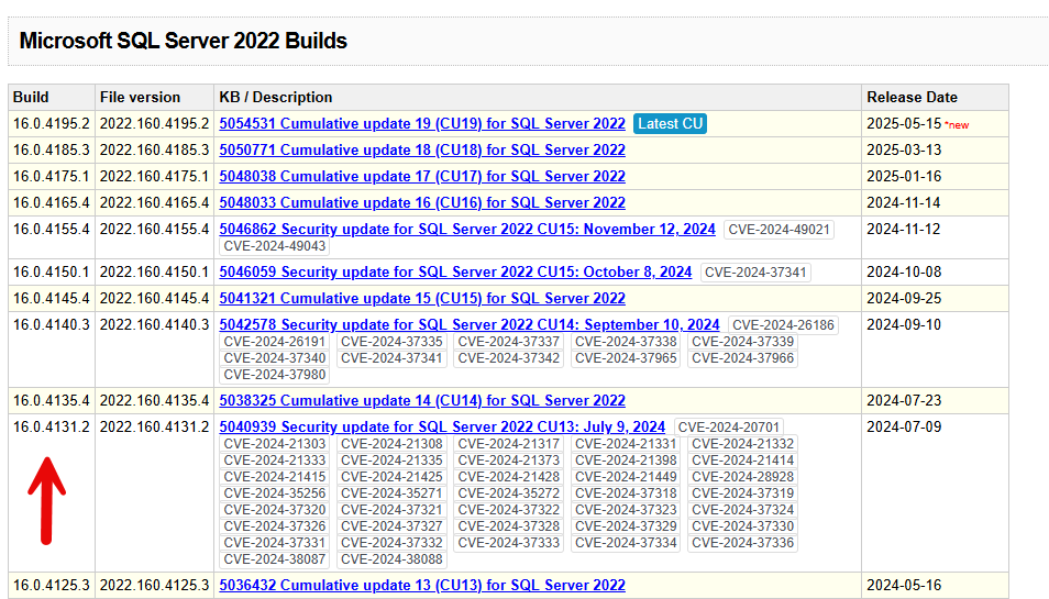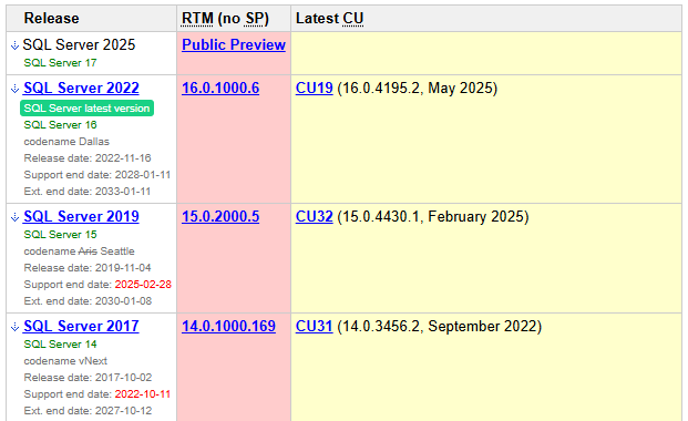 Older versions of SQL Server had Service Packs (SPs). Since SQL Server 2017, we have had Cumulative Updates (CUs) but no SPs.