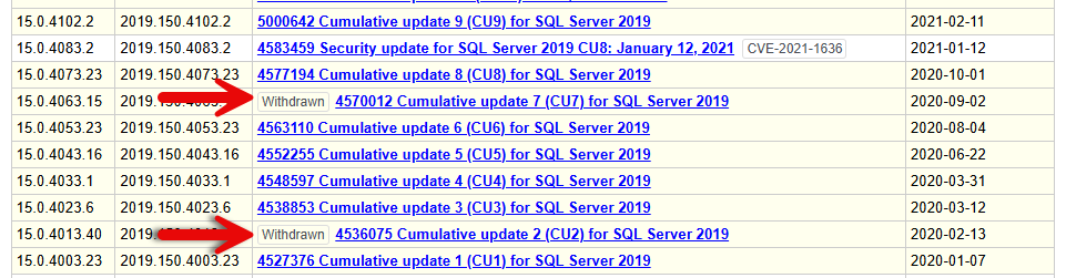 Generally, SQL Server CUs are safe to install, but occasionally, new bugs pop up. Some of these bugs are show-stoppers, to the point that Microsoft has withdrawn several CUs, including two in SQL Server 2019.