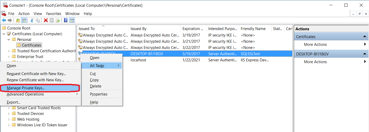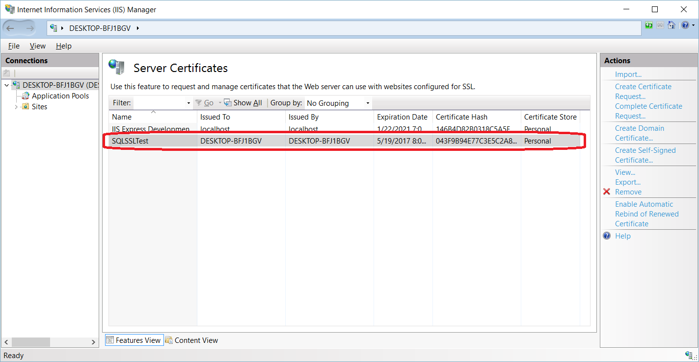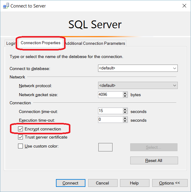 SQL Server offers the ability to use a TLS certificate for encrypting connections. This provides security for data in transit over a network ("data in motion") and prevents attackers from using packet sniffing tools to read data packets.