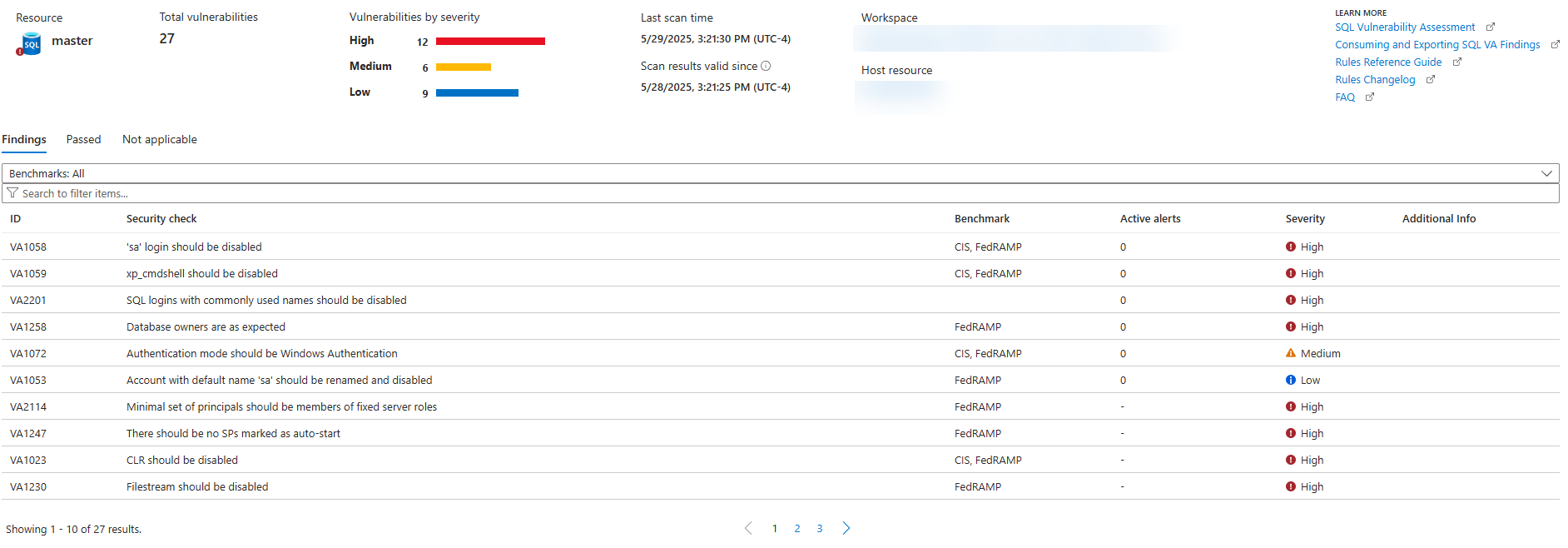 Microsoft Defender for Cloud includes a variety of common vulnerability checks for the SQL Server family of products.